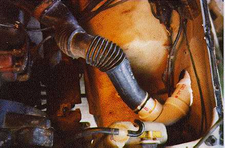 For the moment I used a wire tie to hold it together. The original intake tube was located between the radiator and radiator overflow resivior.